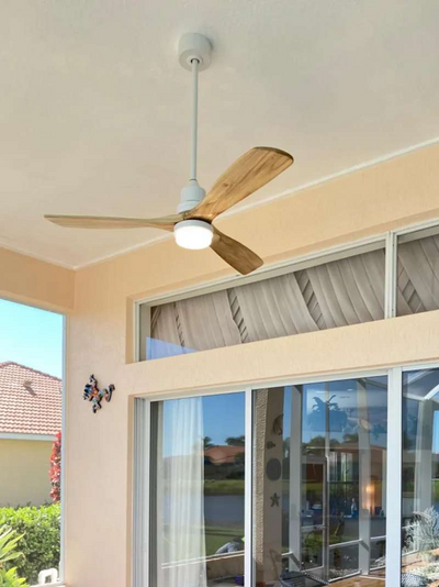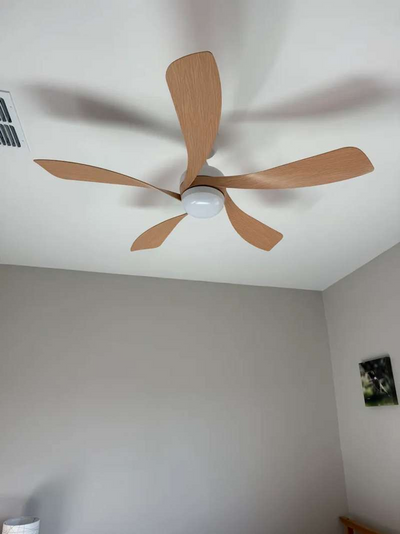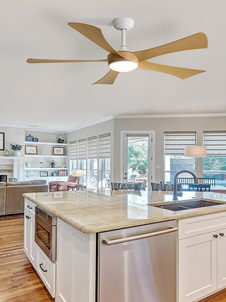 52 Inch Modern Ceiling Fan With Dimmable LED Light 5 Solid Wood Blades Remote Control Reversible DC Motor With Smart APP Control
