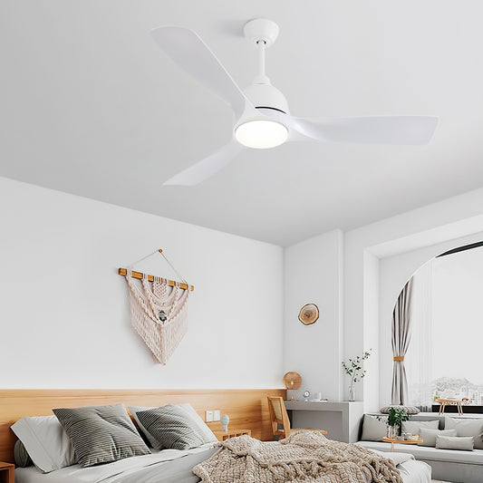 54 Inch White ABS Ceiling Fan 6 Speed Smart Remote Control Dimmable Reversible DC Motor For Living Room